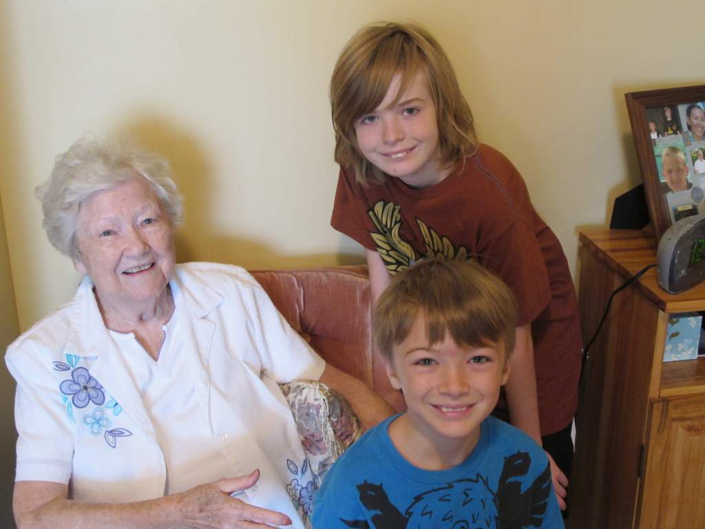 My Grandma with my sons, Luke and Cade.