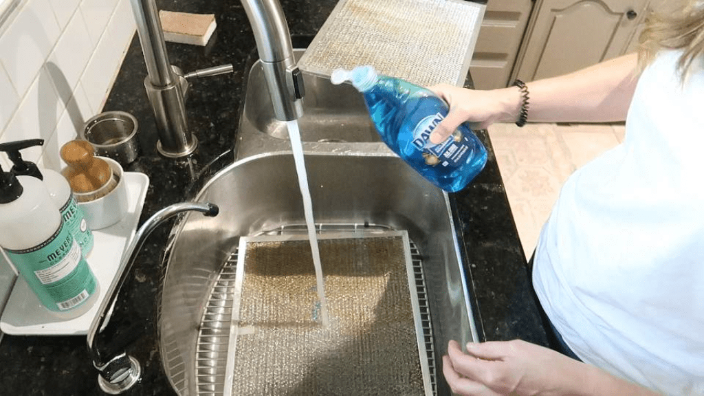 The FIFTH space that may get overlooked is the vent screens in our kitchen exhaust fan above our stove top. These can get particularly dirty because of all the grease and food particles that get pulled in through the vent. I don’t typically use Dawn dish soap, but I have it on hand to clean really greasy areas. I soak mine in hot water with the Dawn dish soap and that seems to cut through the grease. Alternatively, I have heard that you can wash them in your dishwasher as well.
