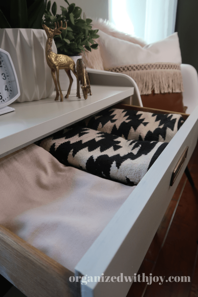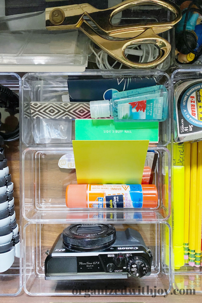 I also wanted to talk about the office. This is probably one of the most difficult spots to keep organized, primarily because often offices become overrun with papers. Again, organization systems help to keep everything in its place. If you have drawers in your desk, invest in drawer organizers, which can be fairly inexpensive. Having little compartments in your desk drawers to store all the little office type items will help to keep your desktop clean of clutter. Dealing with paper clutter can be time consuming and overwhelming! Definitely invest in some sort of filing system for important documents, whether that’s a filing cabinet built into your desk drawer, or some sort of external accordion style filing folder. Additionally, you can use an app like Adobe Scan, a document scanning app, to keep digital records of your paperwork, eliminating a lot of the paper clutter! In my opinion, it’s so much easier to get work done in a organized and tidy space!