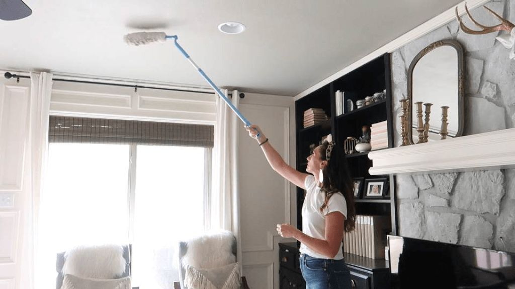 In addition, I like to use my extension duster to clean the cobwebs off the ceiling whenever I deep clean a room!