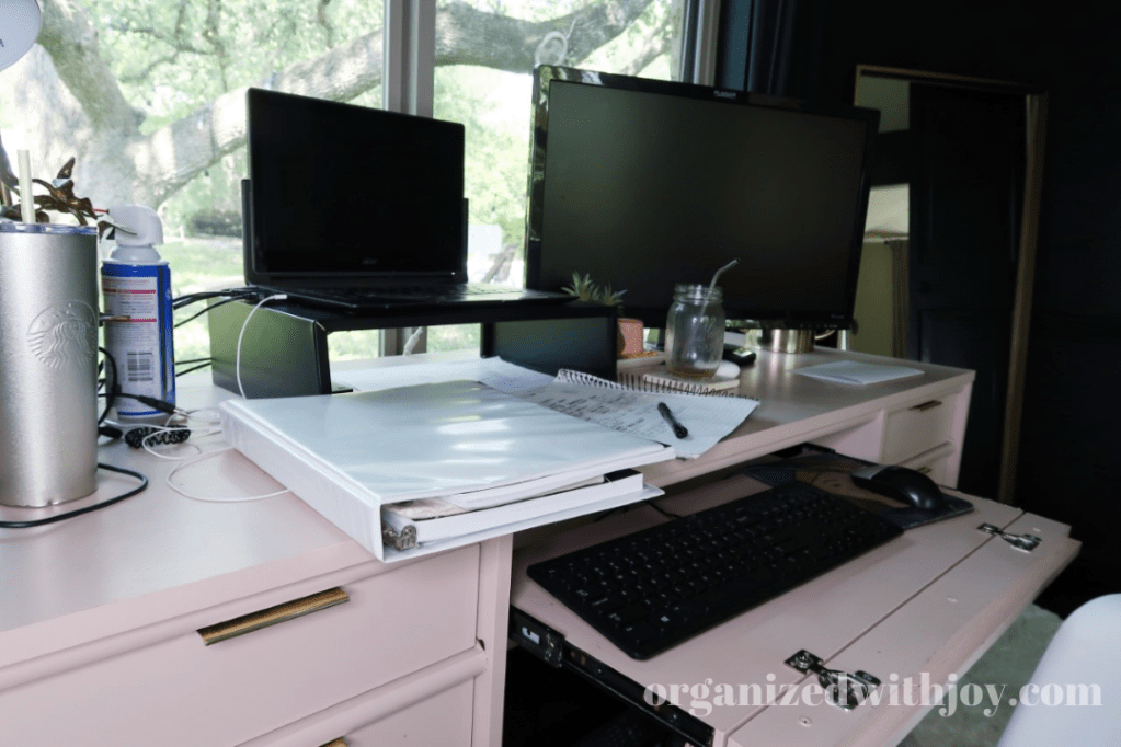 First, the obvious one: declutter your possessions. When you have less, it is easier to clean, store, and organize your items. This can be easier said than done, so I suggest doing this slowly over time. If we try to declutter all of our items at once, we can get overwhelmed and experience decision fatigue. Slowly but surely as you declutter your possessions, you will have less visual clutter.