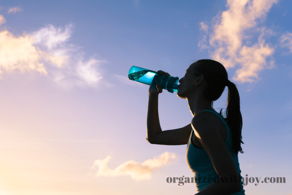 Along those same lines, I have a habit of drinking lots of water every day! Drinking water definitely helps with skin health as it keeps your body and therefore your skin hydrated! I personally aim for about 80 ounces of water per day, but definitely take into account your activity level, how warm your climate is as sweating equals needing more water, and your body size. On most days I only drink coffee, electrolyte drink (powder that I get on Amazon that is sweetened with stevia), and water. I like to have a refillable water bottle with me wherever I go to help get enough water for the day. Yes, there are some days where I drink other beverages, but my habit is to focus on drinking water!