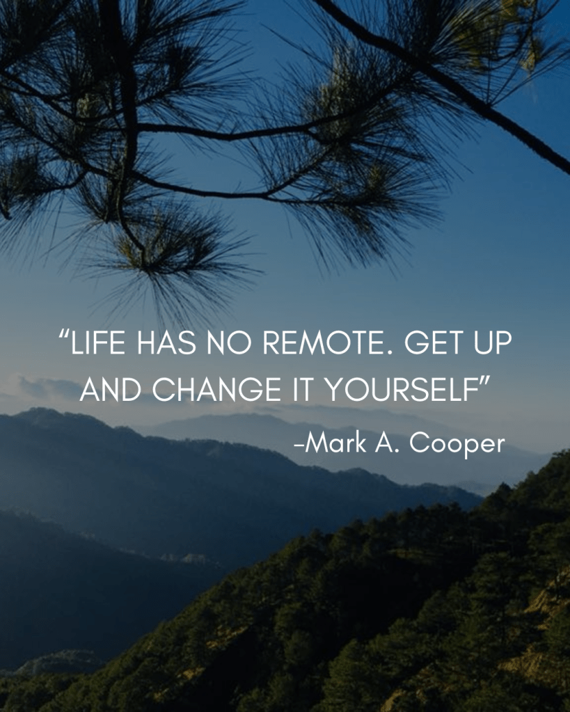 I share all this just to share one example of how we really do have control to make changes in our lives. I came across a couple of quotes that really spoke to me with regards to this topic and I wanted to share them with you. The first is a quote from Germany Kent, who is a journalist, author, actress, producer, and media personality. She said, “Never underestimate the power you have to take your life in a new direction.” The other quote comes from Mark A. Cooper and it says, “Life has no remote. Get up and change it yourself.” Both of these quotes really encapsulate this idea of choosing your own path in life.