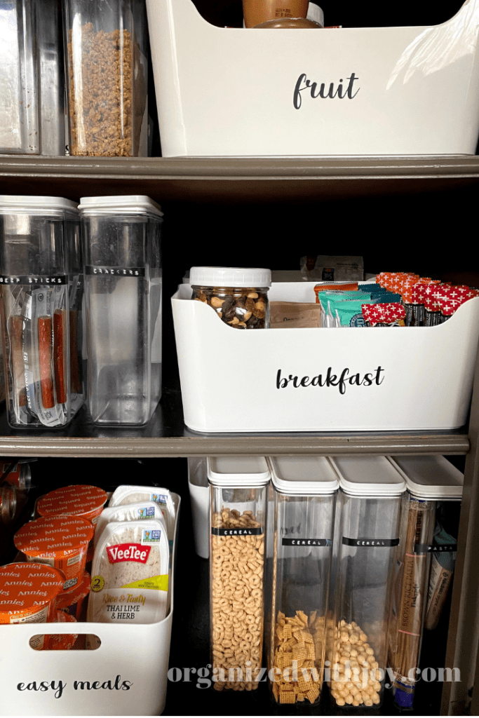 Another tip I have is to inform your family of your pantry system. Like I mentioned, my family knows the general system I have set up for our pantry. If family members know the basic system, they can help stay on top of putting things where they belong making it a more effective system. You could add labels to the bins to make this easier for family members, and I find labels also aesthetically pleasing.